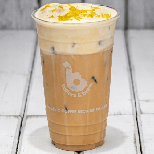 Coconut dream organic latte which contains 2 shots of organic espresso topped with our dreamy creamy lemon coconut cold foam, your choice of milk. Specialty size medium.