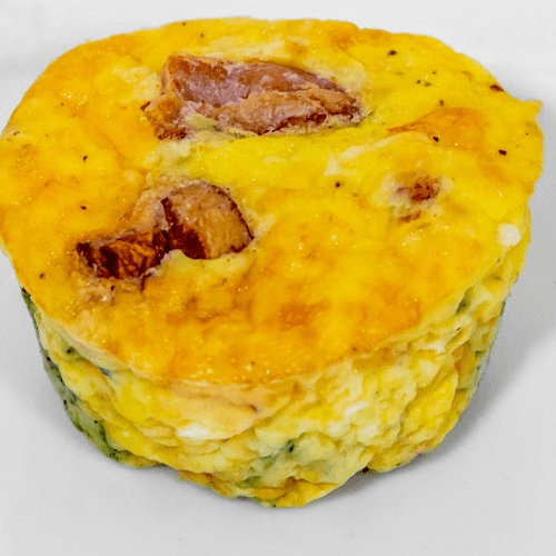 Fresh hand made egg bite with cheddar cheese, bacon and broccoli