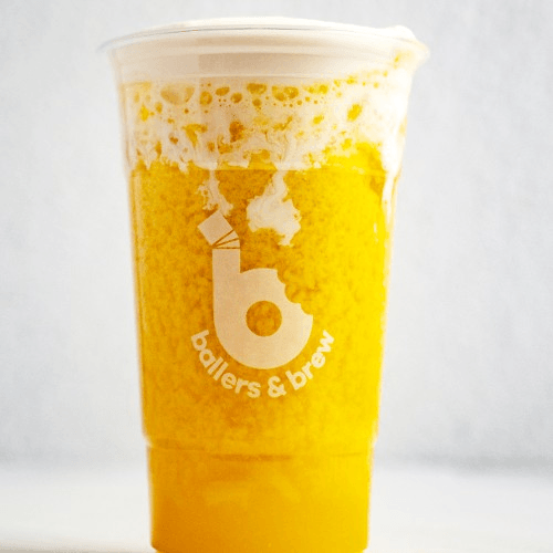 Refreshing bursts of real pineapple juice and coconut milk, mango sorbet topped with our yummy cold foam Available in our standard 24 oz cup