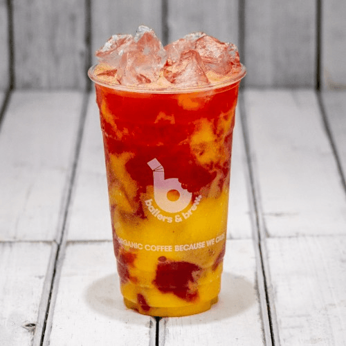 Refreshing hibiscus tea blended with mango sorbet. Specialty size medium