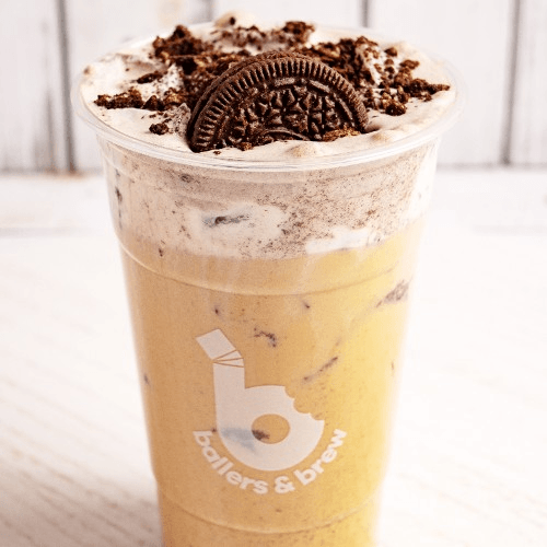 Organic 2 shots of espresso with Oreo cookies and cream , with your choice of milk, topped with Oreo foam in our 24 oz size